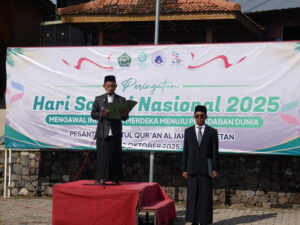 Magetan — Dalam rangka memperingati Hari Santri Nasional (HSN) 2025, Pondok Pesantren Baitul Quran Al Jahra Magetan menggelar upacara bendera di lapangan selatan pada Selasa, 22 Oktober 2025. Kegiatan tersebut diikuti oleh seluruh santri dan asatidz dengan penuh khidmat serta semangat kebangsaan.